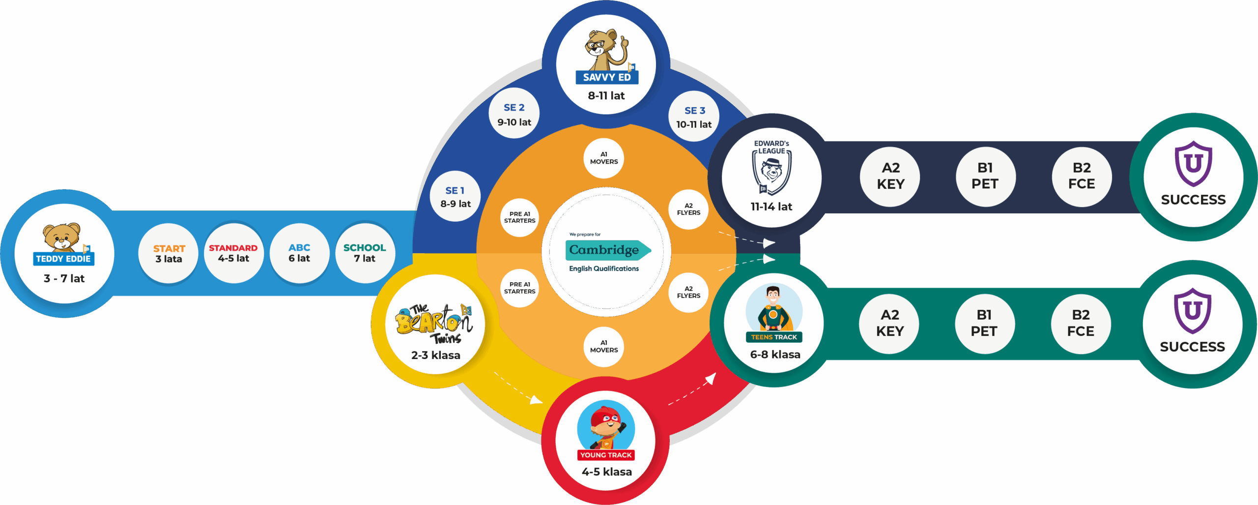 Praktykujemy skuteczne i przyjazne dzieciom metody nauczania angielskiego (Teddy Eddie dla najmłodszych, Savvy Ed dla uczniów klas II-IV) przygotowujące do międzynarodowych egzaminów Cambridge.